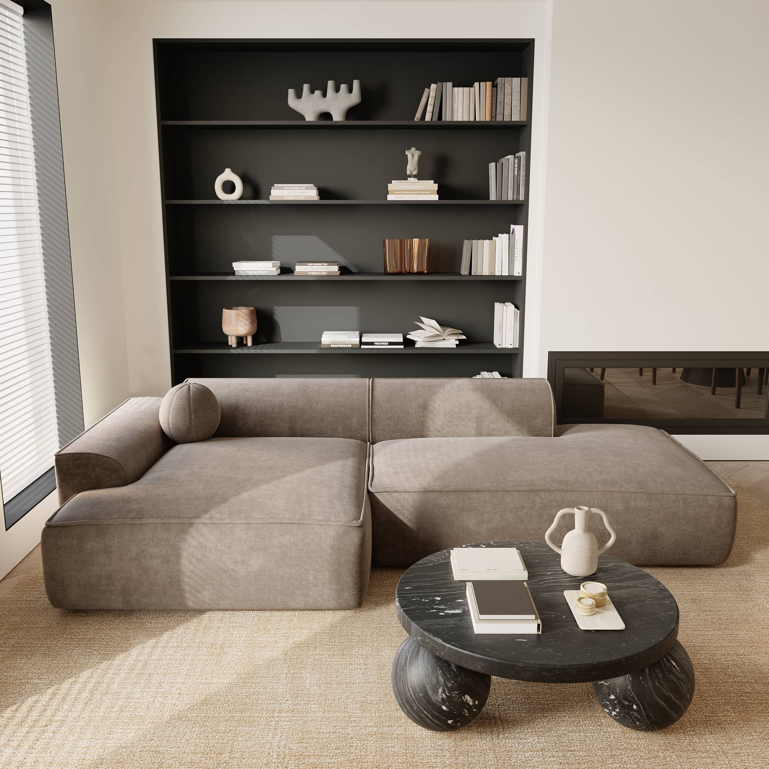 Rechte hoekbanken COOPER 4 personen Zacht geweven stof Crème