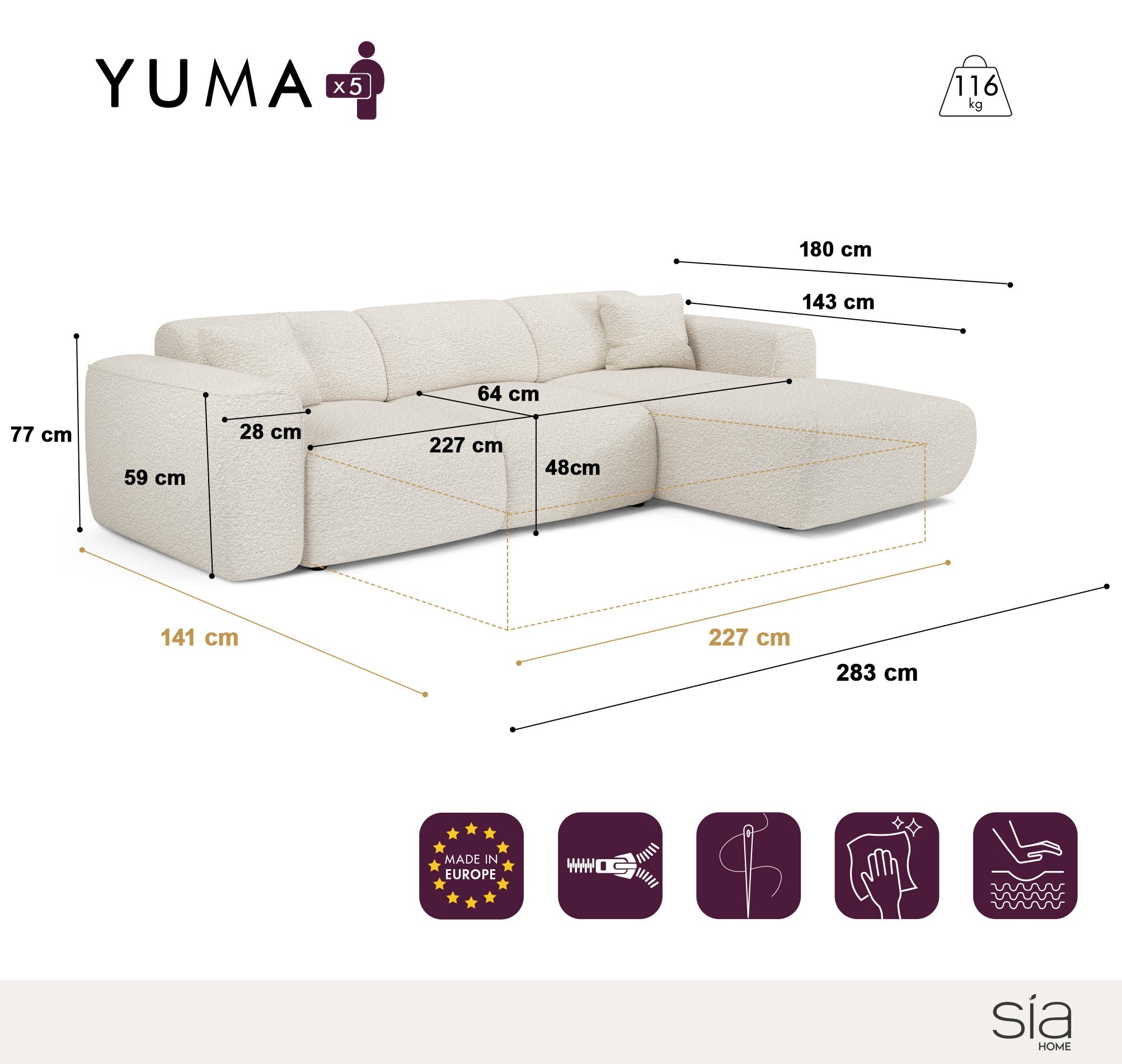 by fonQ Orin Hoekbank Links met Slaapfunctie - Bouclé - Ivoor