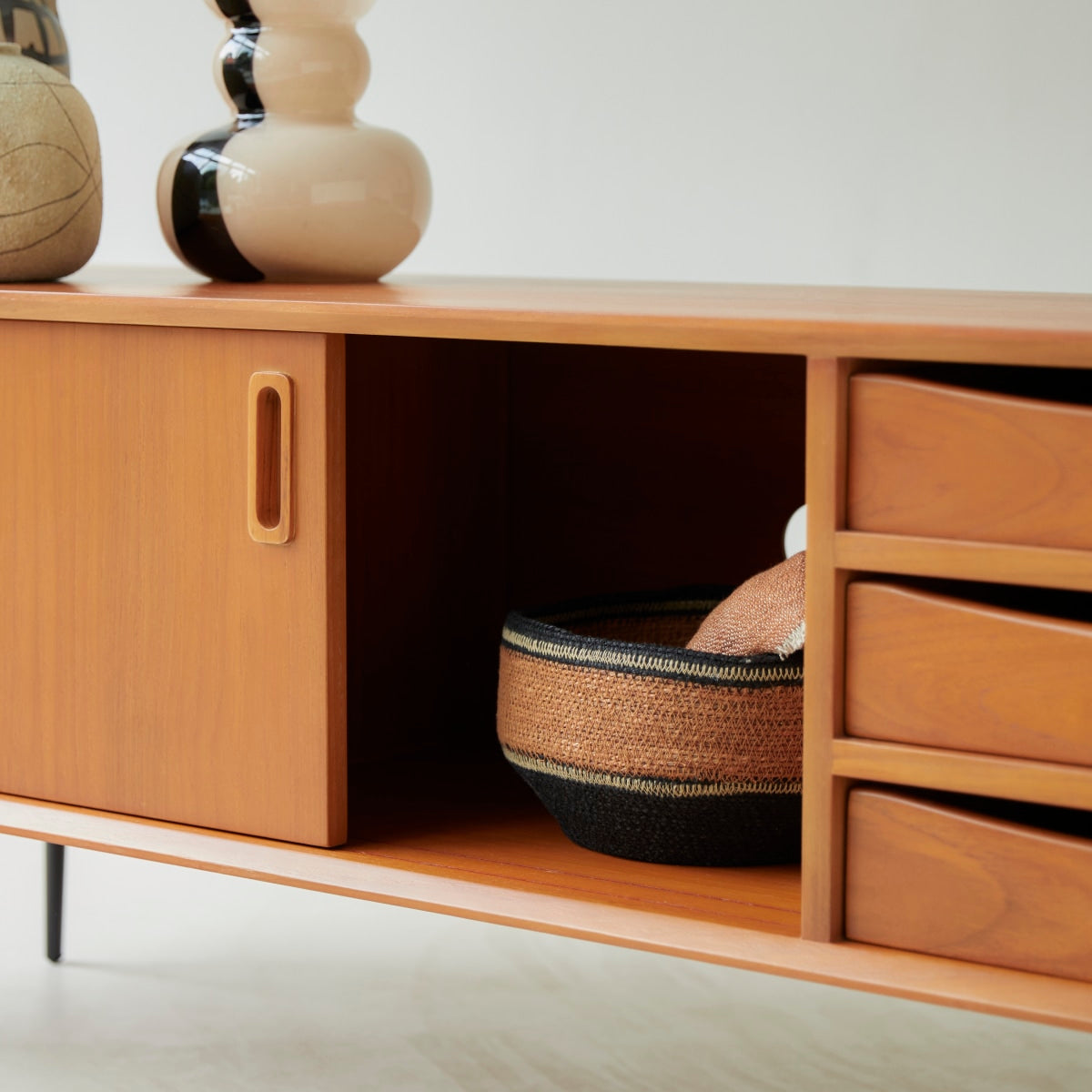 Tikamoon - Luis - Opbergkast van massief iepenhout en gevlochten riet