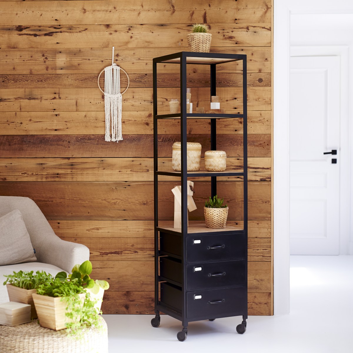 MINT Furniture KAST M, 112 x 30 x 179 cm, eiken, grijs laminaat