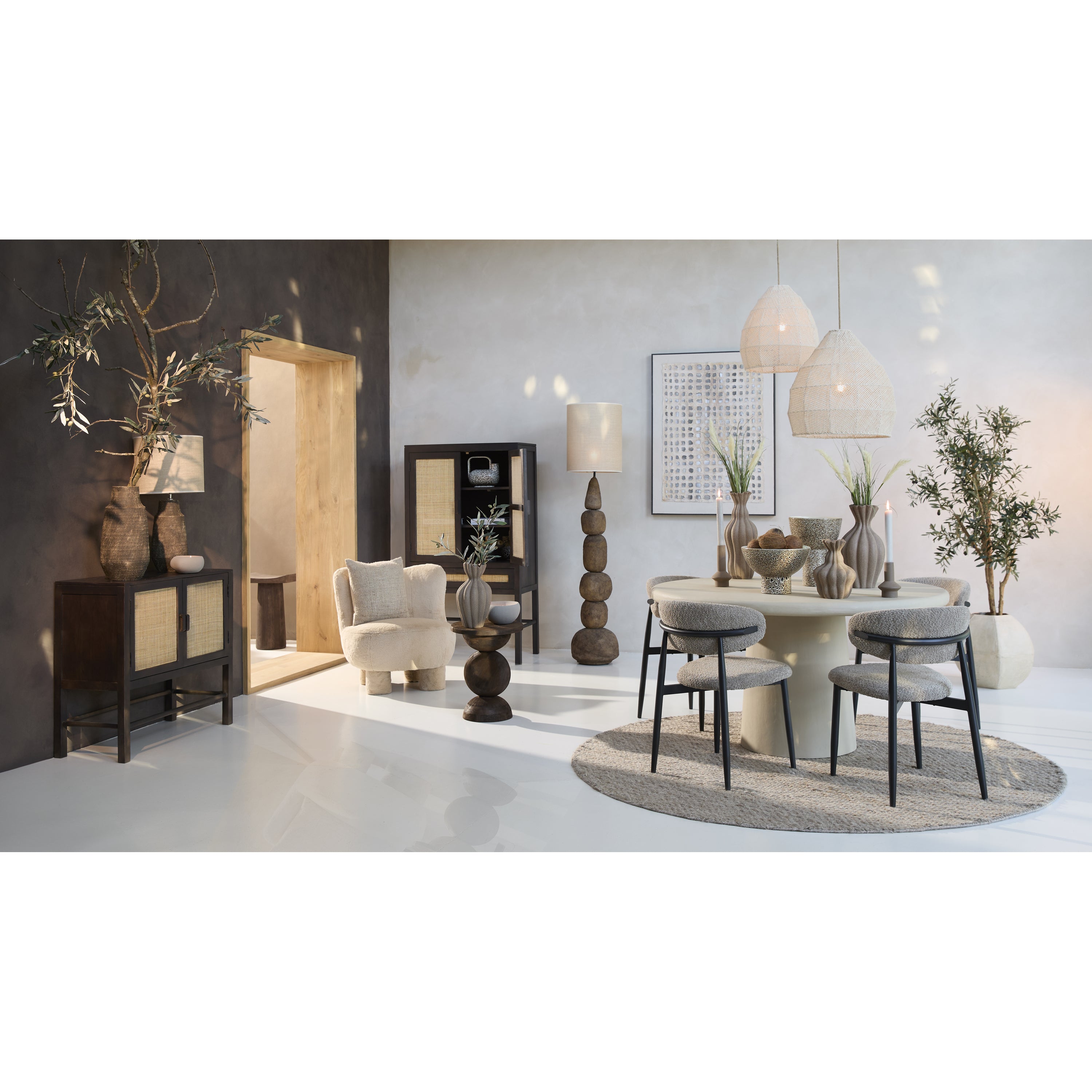 Tikamoon - Nina - Lage fauteuil in massief mindihout en ecru stof