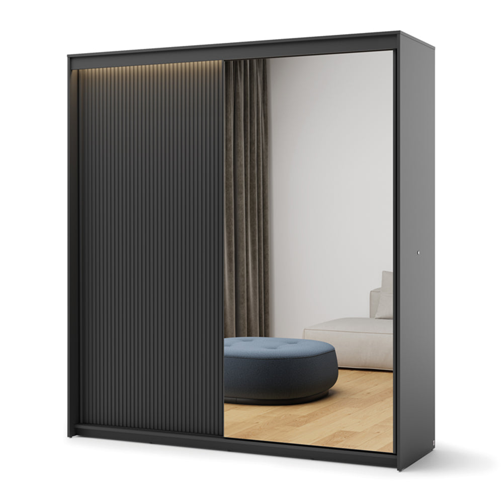 by fonQ Brive Kledingkast met 2 Schuifdeuren en Verlichting - Zwart