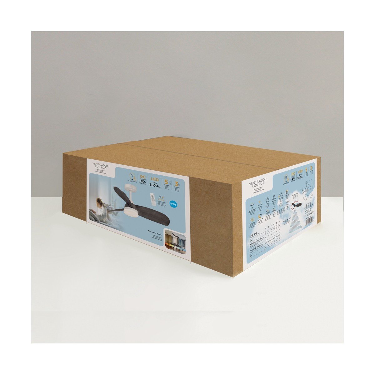 CristalRecord Plafondventilator Byan Ø 91 cm outdoor IP65 grijs wit