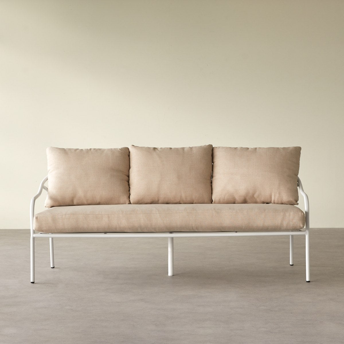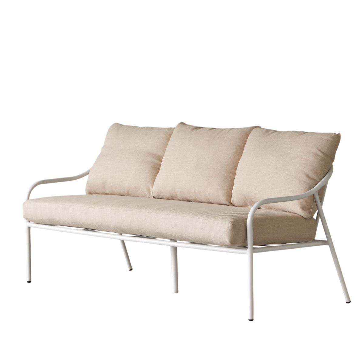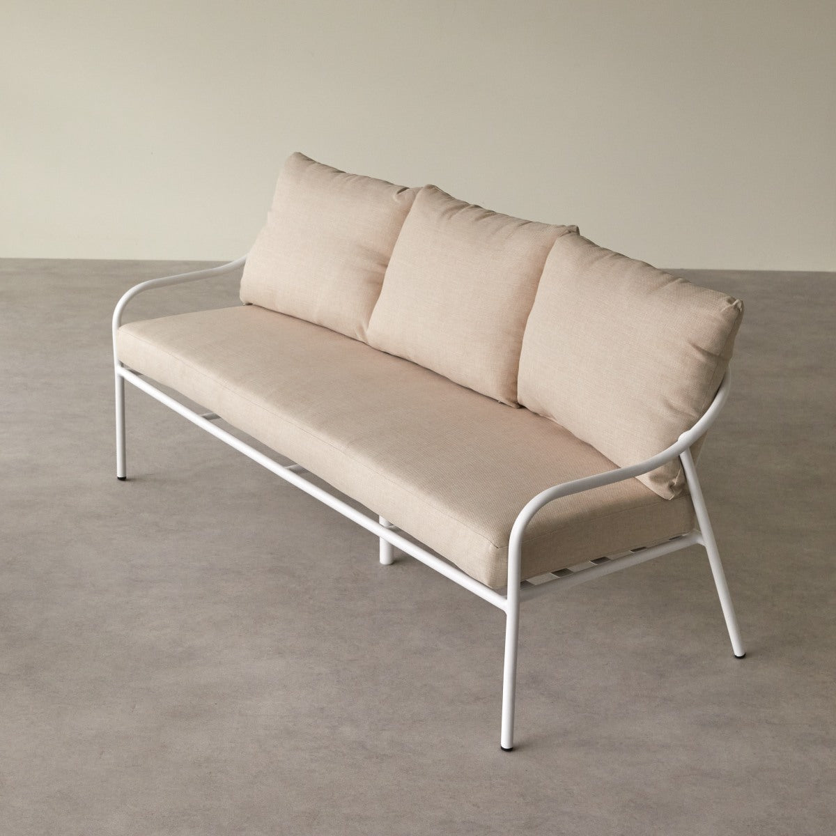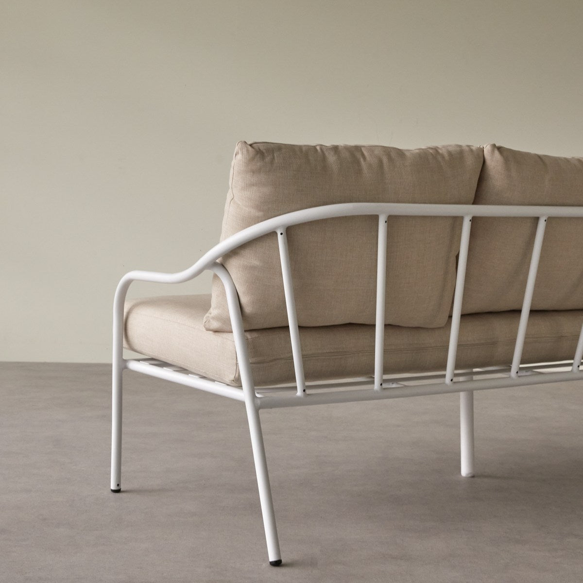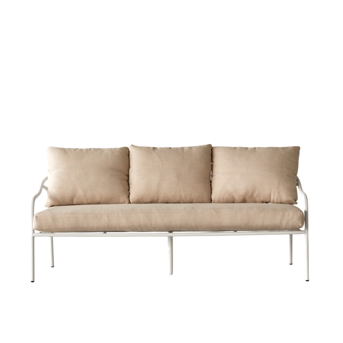 Tikamoon - 3-zits tuinbank in ecrukleurige stof en wit metaal Luca