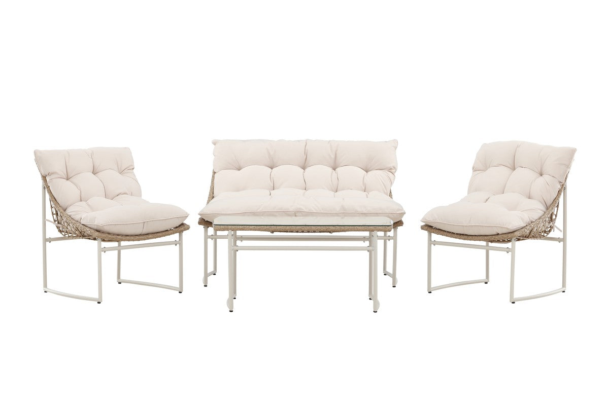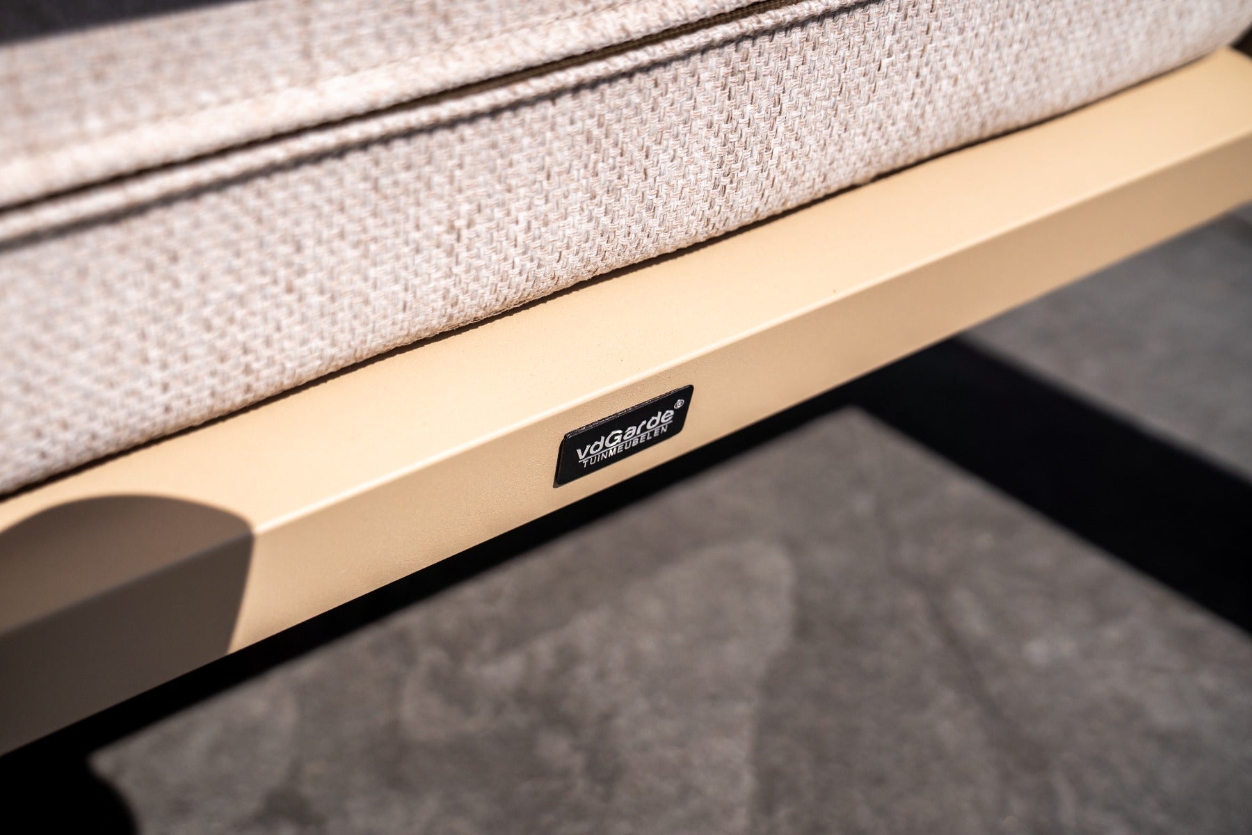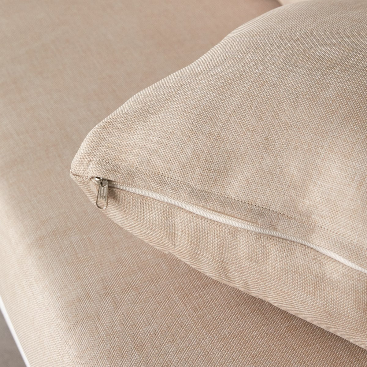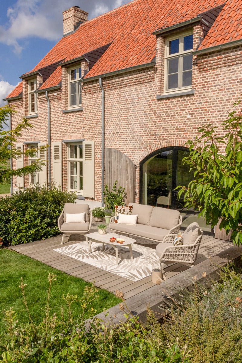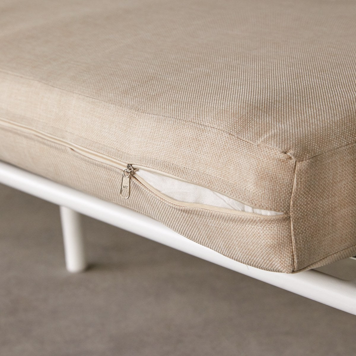 Tikamoon - 3-zits tuinbank in ecrukleurige stof en wit metaal Luca
