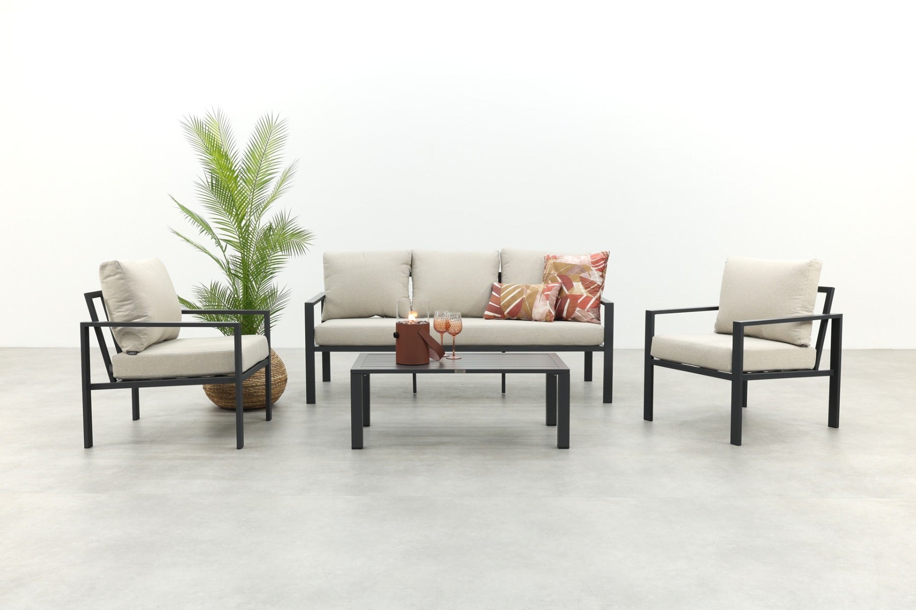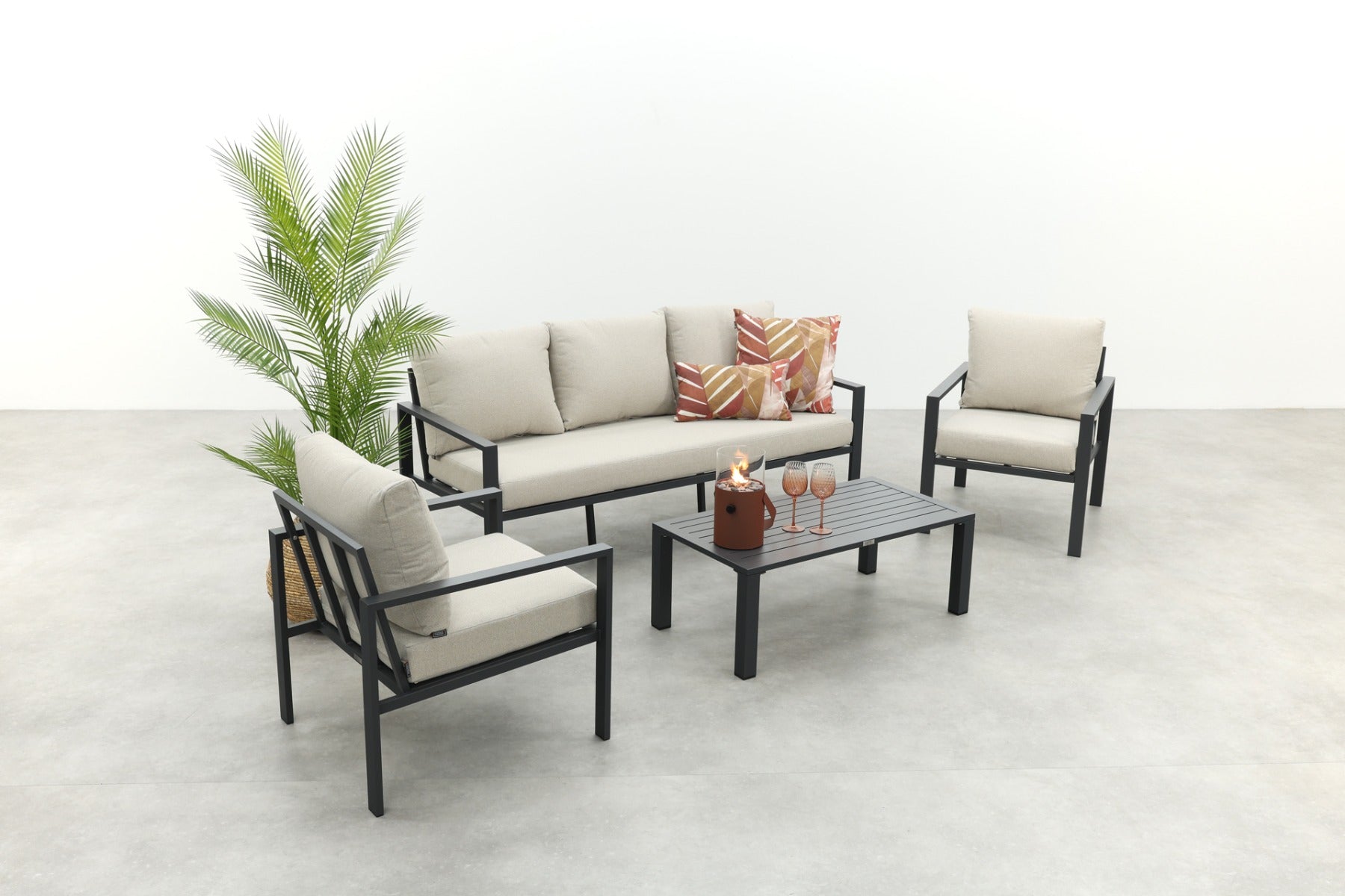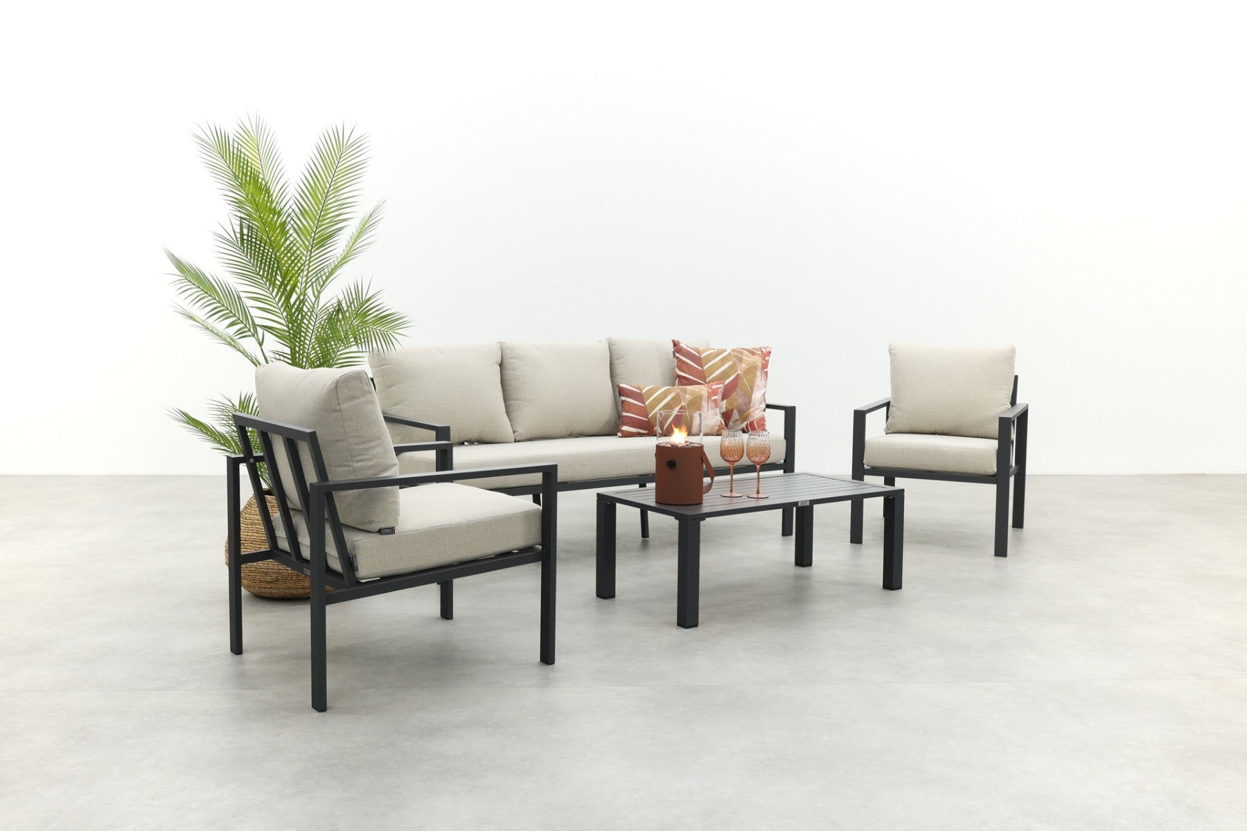 GI Allasio lounge-dining hoekset (5-delig) - Carbon black Zand