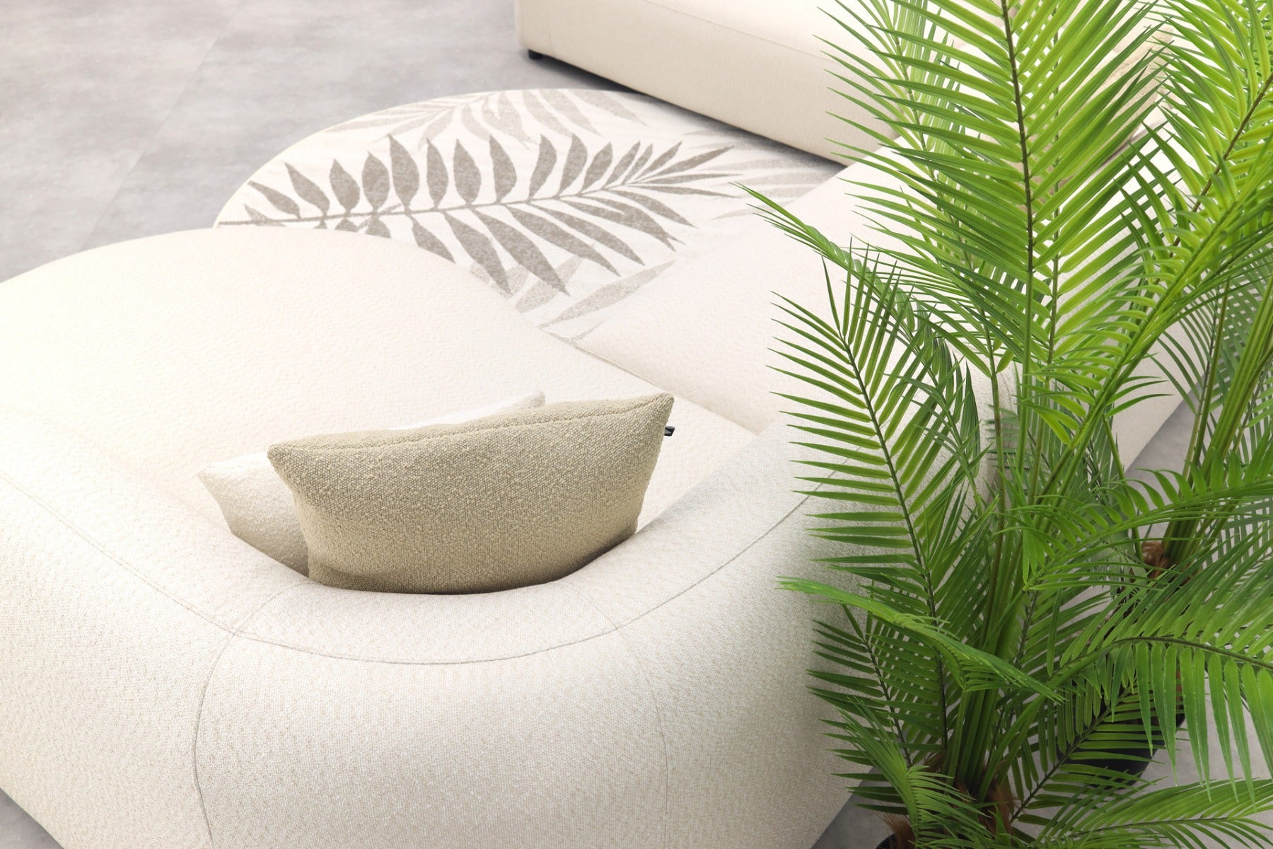 Madeira ronde u-vorm hoekbank + chaise longue links - Naturel Sunbrell