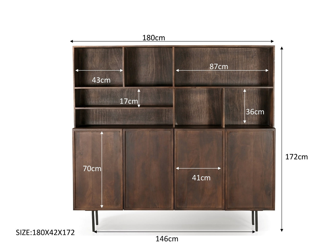 Livingfurn - Buffetkast Bruin Mangohout - 180x45x150cm - Elan
