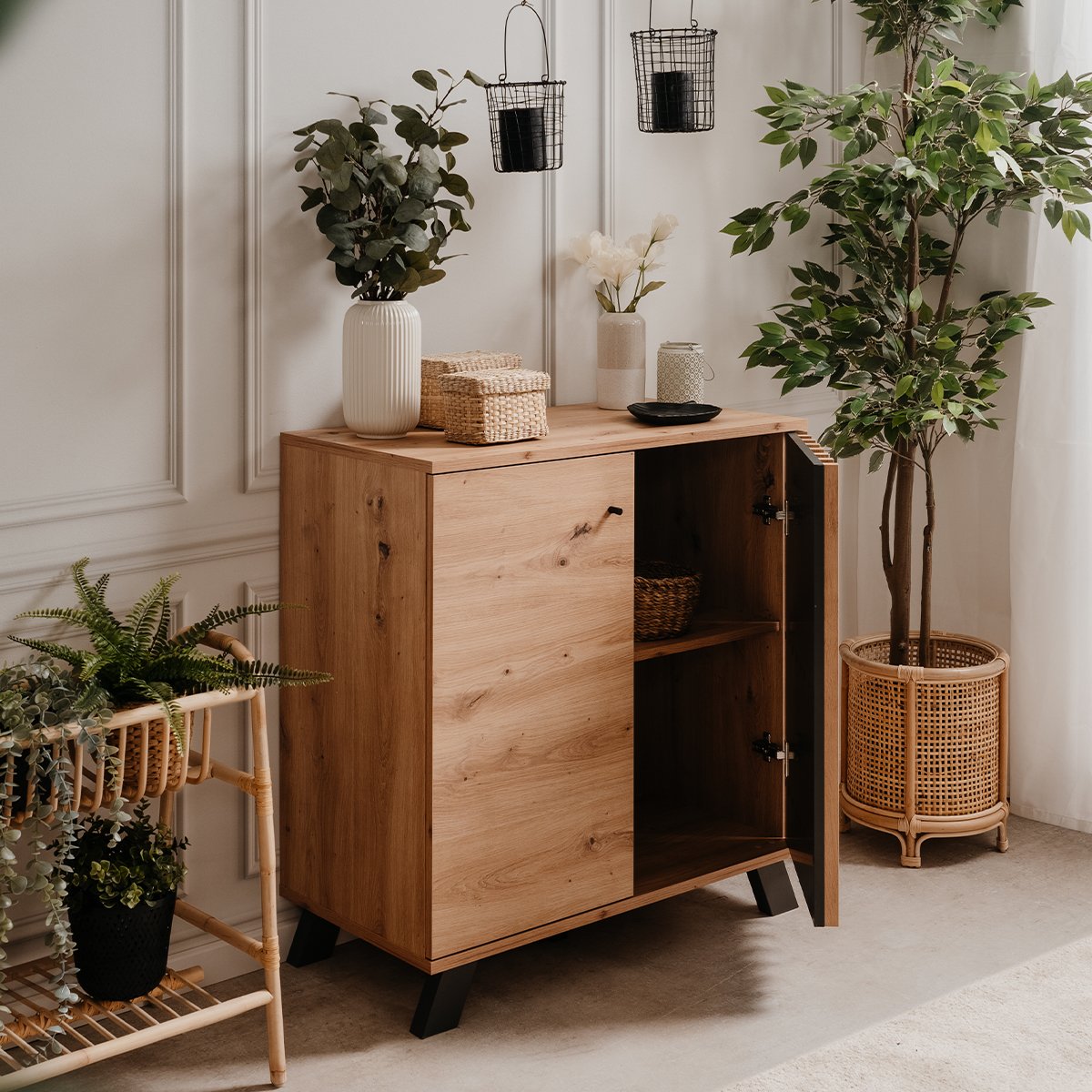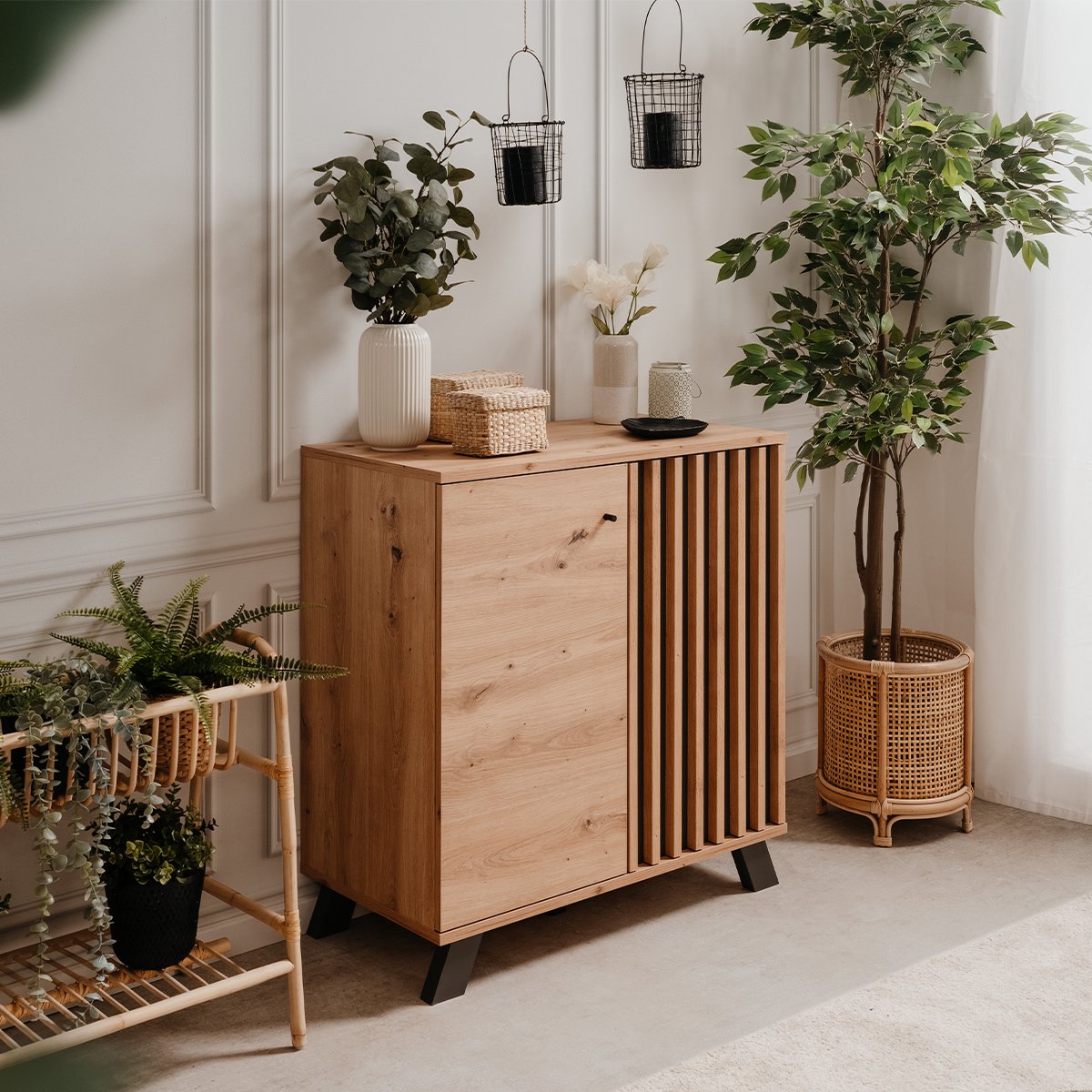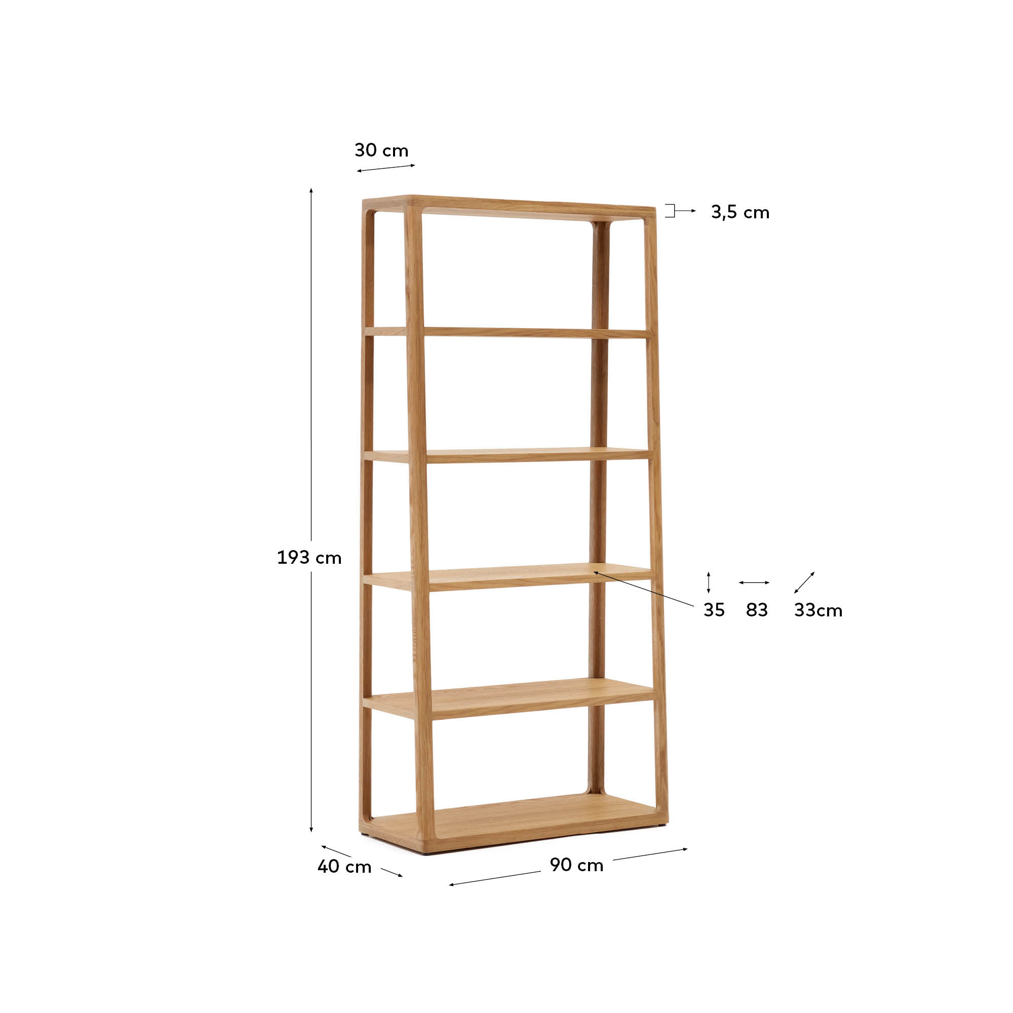 Kave Home - Maymai rekken met massief eiken structuur, 90 x 193 cm