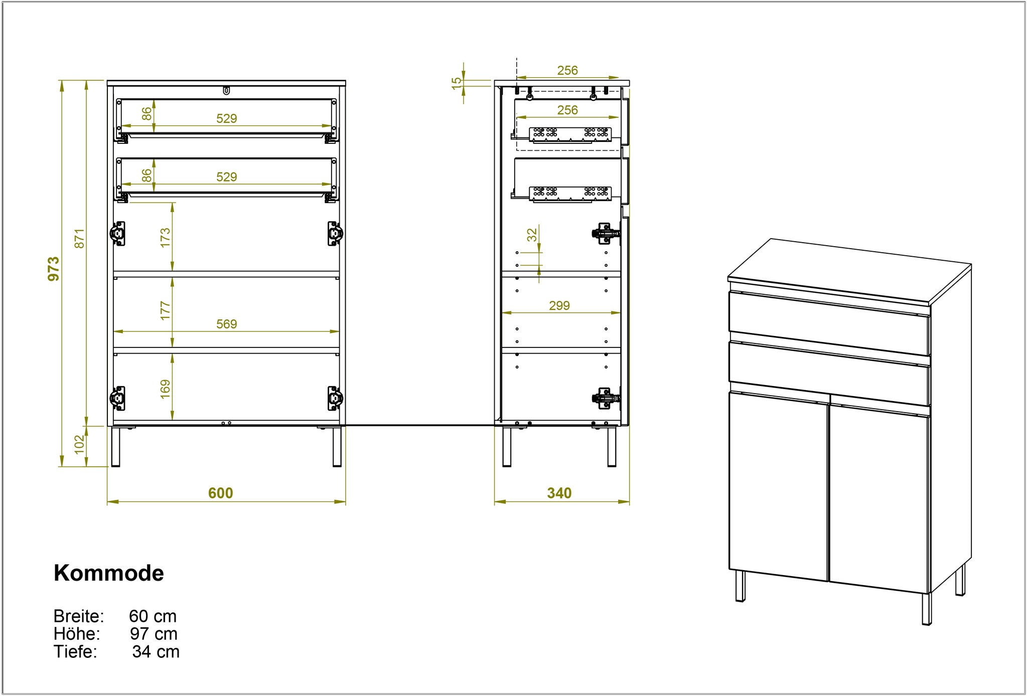 Olivine Katja Sideboard Dressoir Groen - Metaal - Glas - 132 cm
