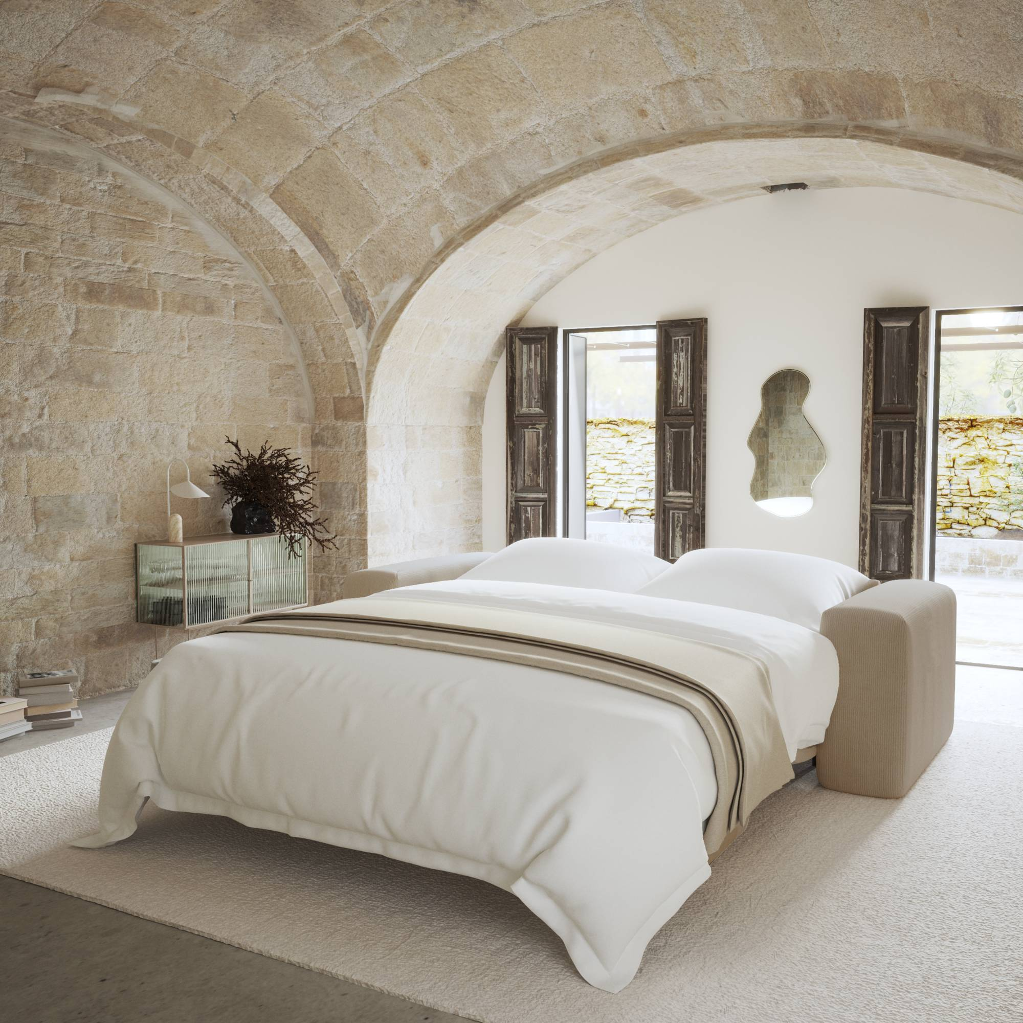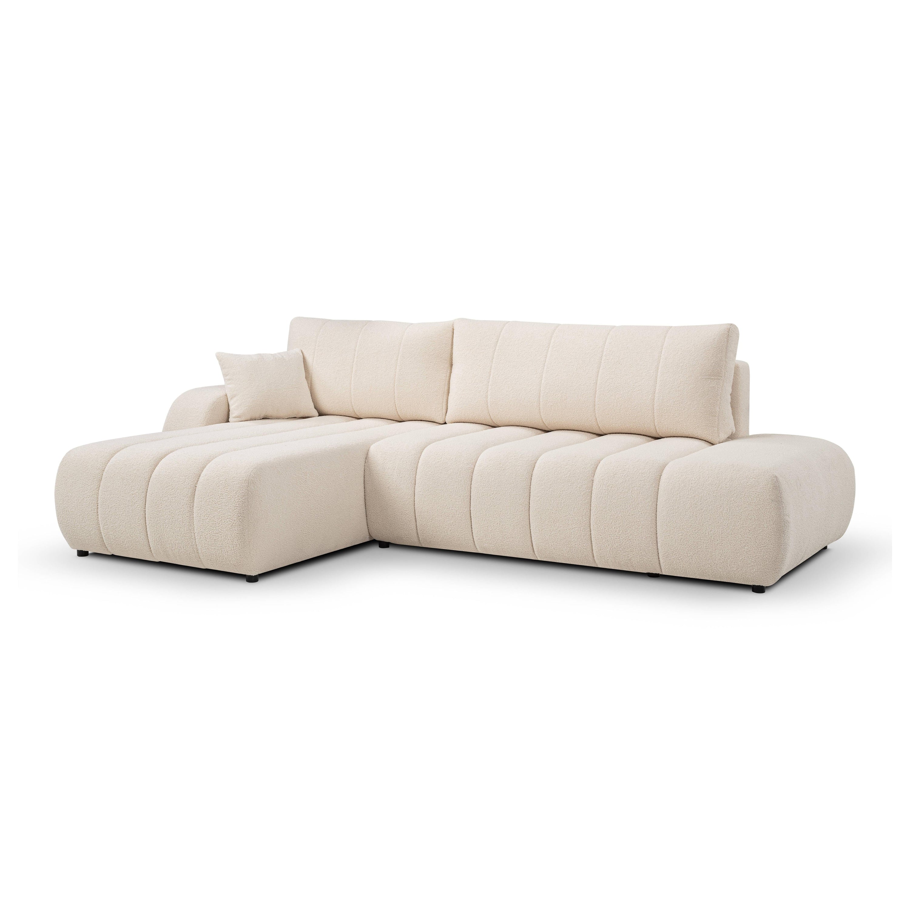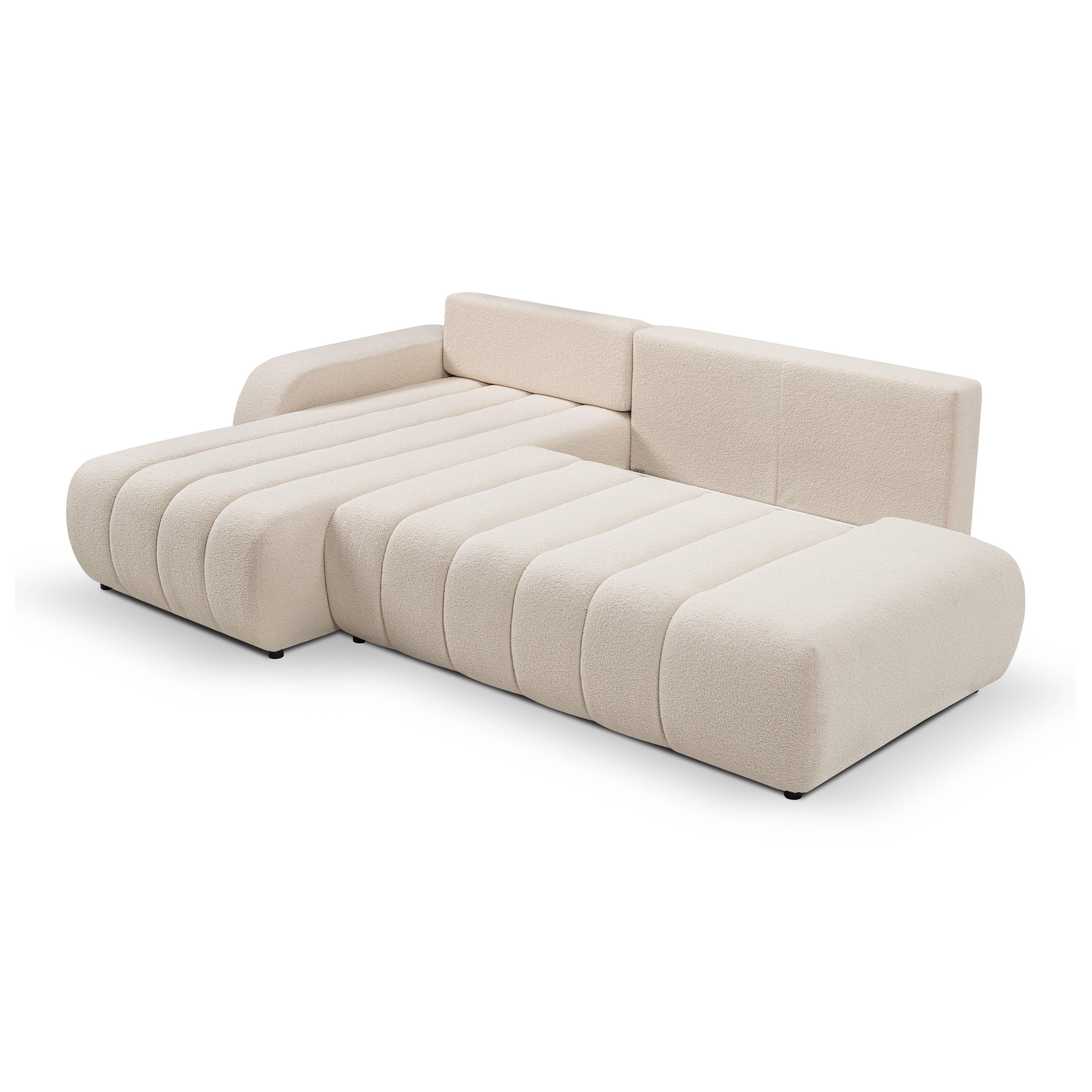 by fonQ Bree Hoekbank Links met Slaapfunctie - Bouclé - Crème