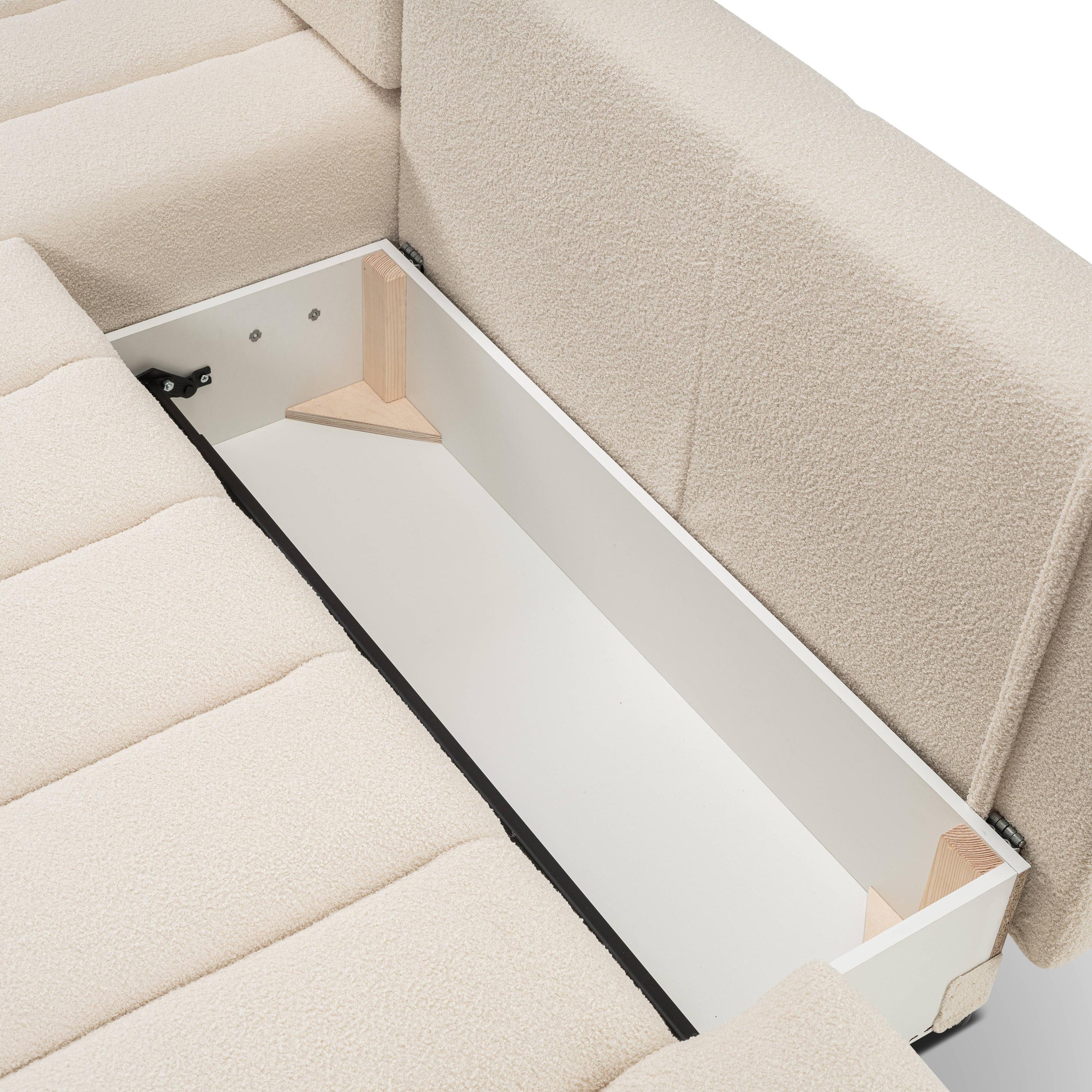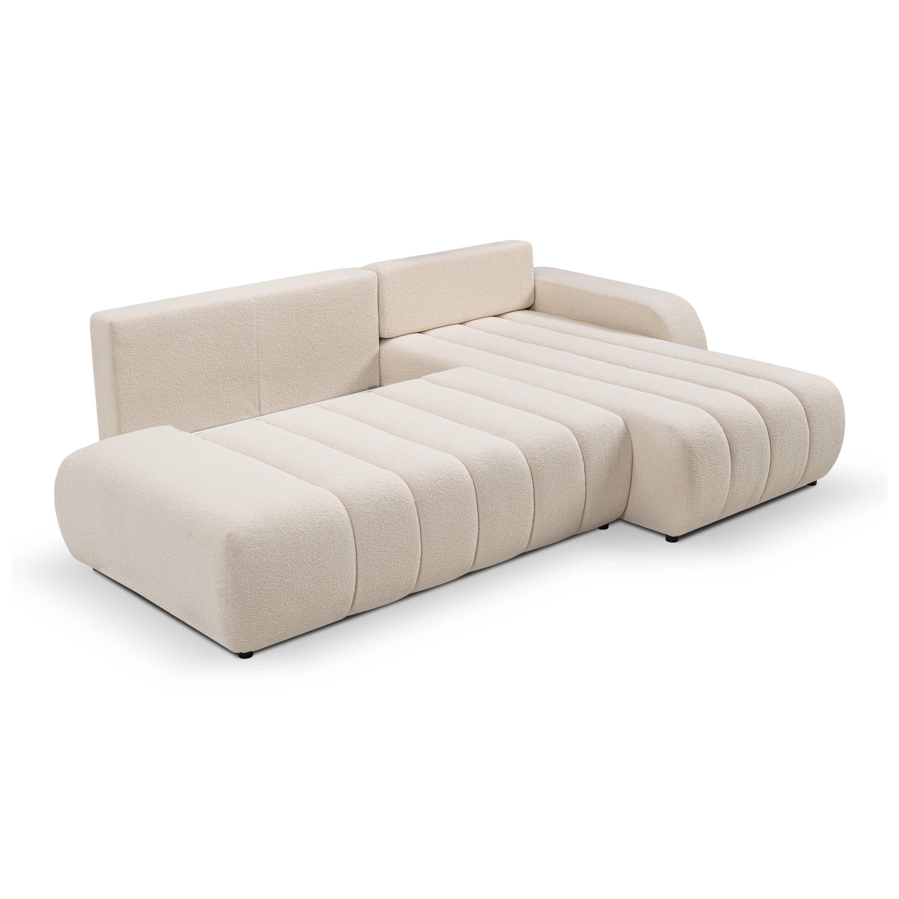 by fonQ Bree Hoekbank Rechts met Slaapfunctie - Bouclé - Crème