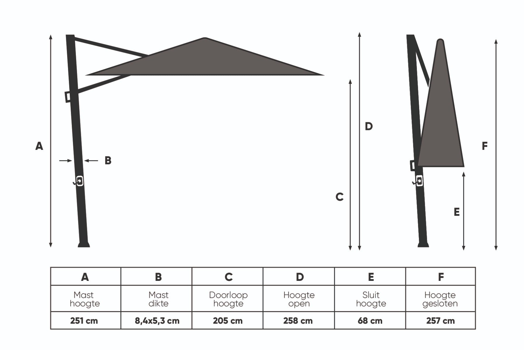 Platinum Challenger T2 zweefparasol premium - 3,5x2,6 m. - Champagne t