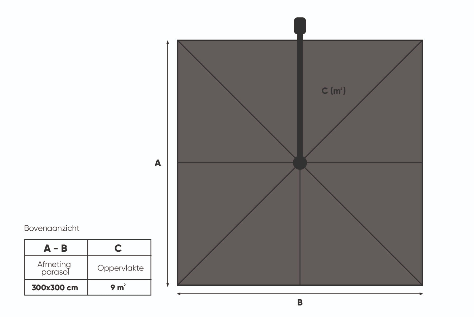 Platinum Challenger T2 - 3x3 m. - Antraciet + ingraafvoet en hoes